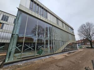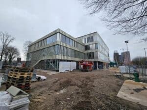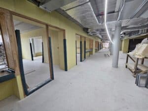 De meeste binnenwanden zijn geplaatst, waardoor de lokalen en andere ruimtes nu zijn ingedeeld. De schilder is bezig met het aanbrengen van renovliesbehang. De plafonneur is begonnen met het aanbrengen van de eerste plafonds in de toiletten. Ook in de fietsenkelder is gestart met het isoleren van het plafond en de eerste buitengevels zijn bijna klaar en afgewerkt.